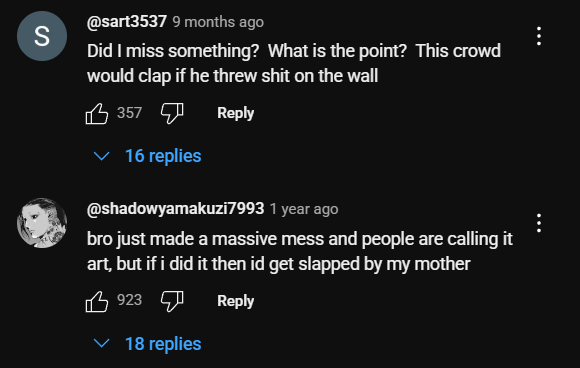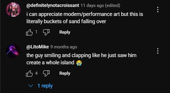 Ambil contoh bagaimana publik merespon Sand Column garapan Roman Signer. Mulai dari, “daya otak satu ruangan hanya satu byte,” hingga emoji badut 🤡 ramai bermunculan di kolom komentar. Sentimen sinis dan negatif mewarnai ruang diskusi. Alih-alih produktif, karya seni di media sosial kemudian menjadi ‘amunisi’ bagi publik untuk men-delegitimasi gerakan seni kontemporer. Ini berbahaya, karena publik menjadi rentan untuk mengamini dogma-dogma fasis dalam melihat karya seni.